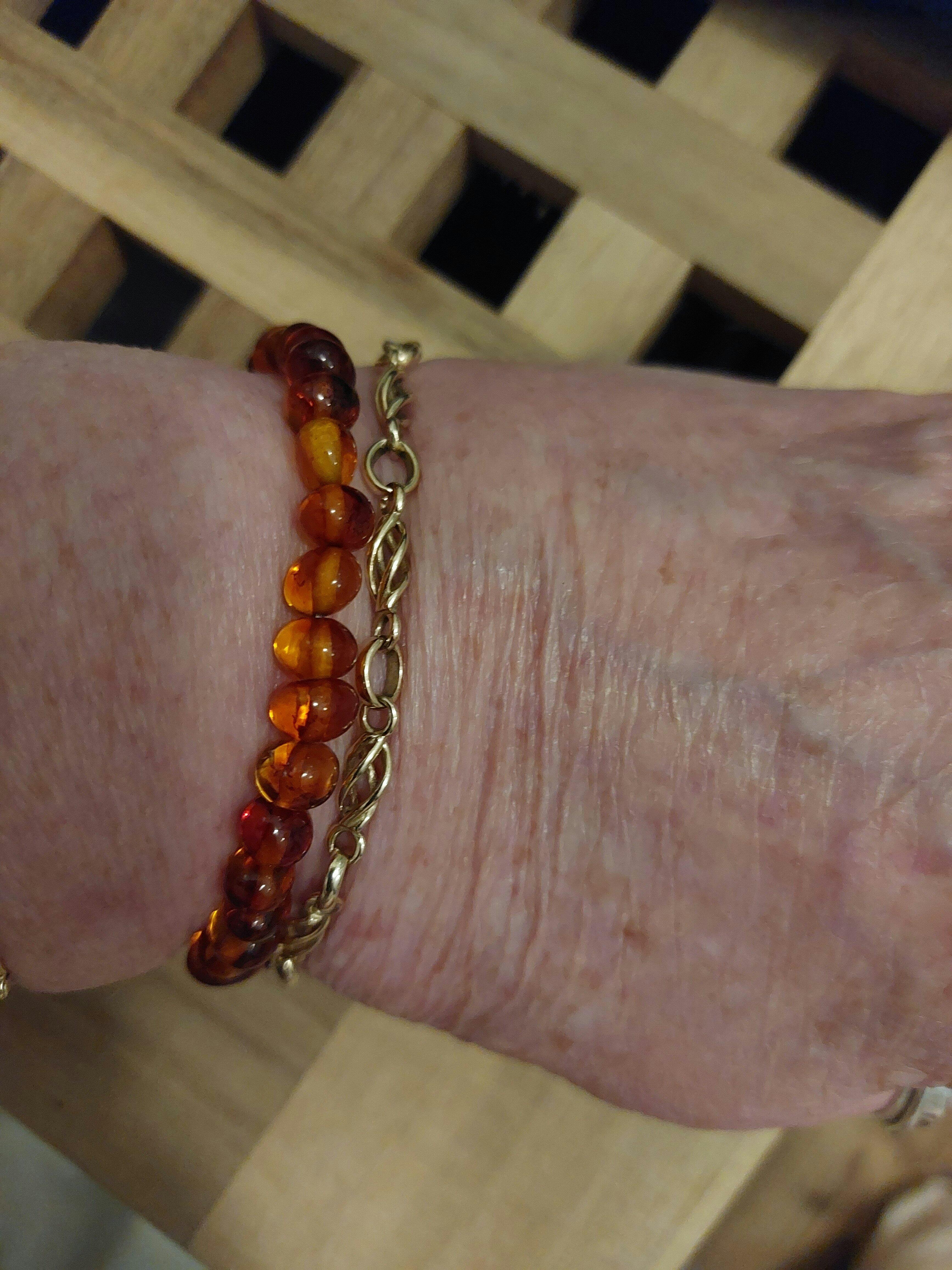 - Handmade with genuine polished cognac brown Baltic amber beads.